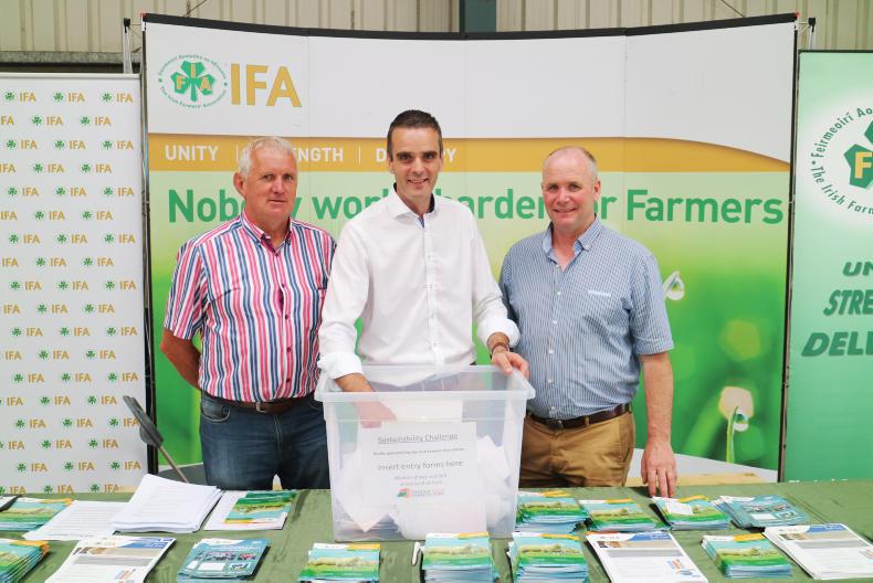 Selecting the winners of the Sustainability Challenge at Sheep2018 were John O'Connor, Teagasc Kildalton College, Joe Healy, IFA President and Sean Dennehy, IFA Sheep Chair.