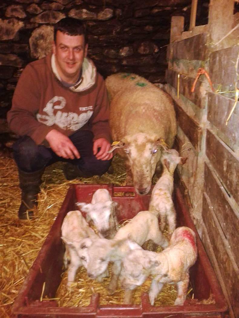 Sheep farmer Johnny Kee says the ewe and her quintuplet lambs are in good health so far.