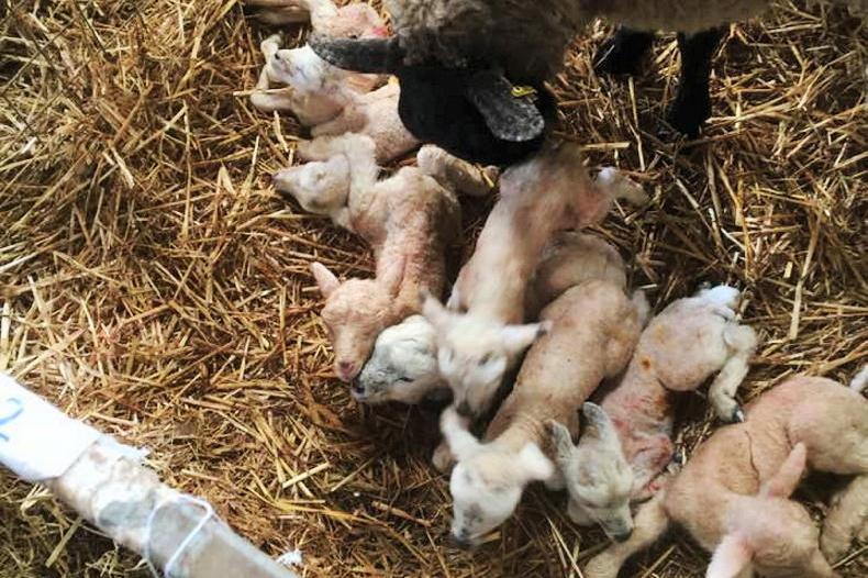 The four-year-old ewe, which was bred to a Texel ram, had been scanned back in January and was believed to be carrying four lambs.
