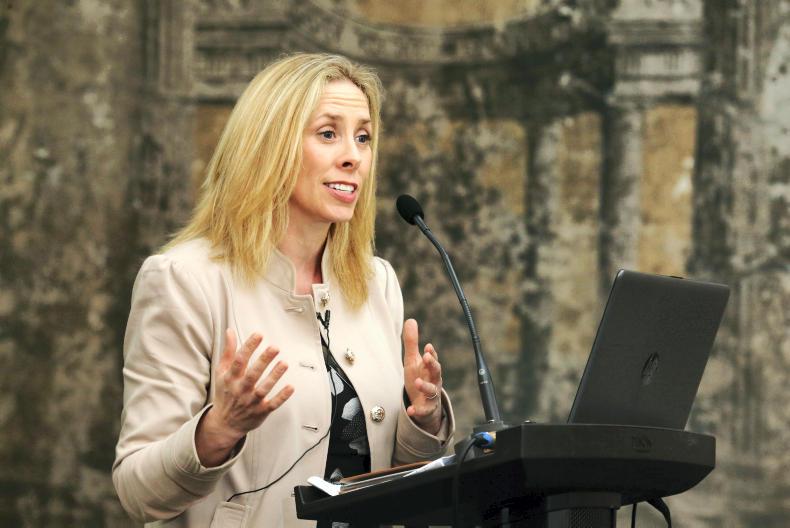 Once-a-day milking – better for the environment, better for farm profitability, but most of all, better for family life. This was the well-received message from the eloquent Gillian O’Sullivan from Dungarvan when she shared her family’s transition to once-a-day milking. Gillian shared ICBF data, herd fertility and health records and an overview of her farm structure, all of which demonstrated that once-a-day milking meets the sustainability challenges on the O’Sullivan farm.