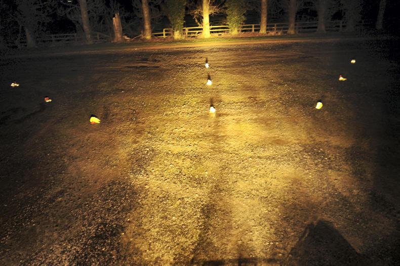 As these tractors can spend a lot of time working in dark sheds and feeding cattle in both early mornings and late nights, we ran a simple lighting test. After nightfall, we parked the tractor in an area devoid of all other artificial light. Cones with reflective strips were set up at 5m intervals to the left, middle and right of the front of the tractor. Once set up, all the tractor’s lights were turned on.