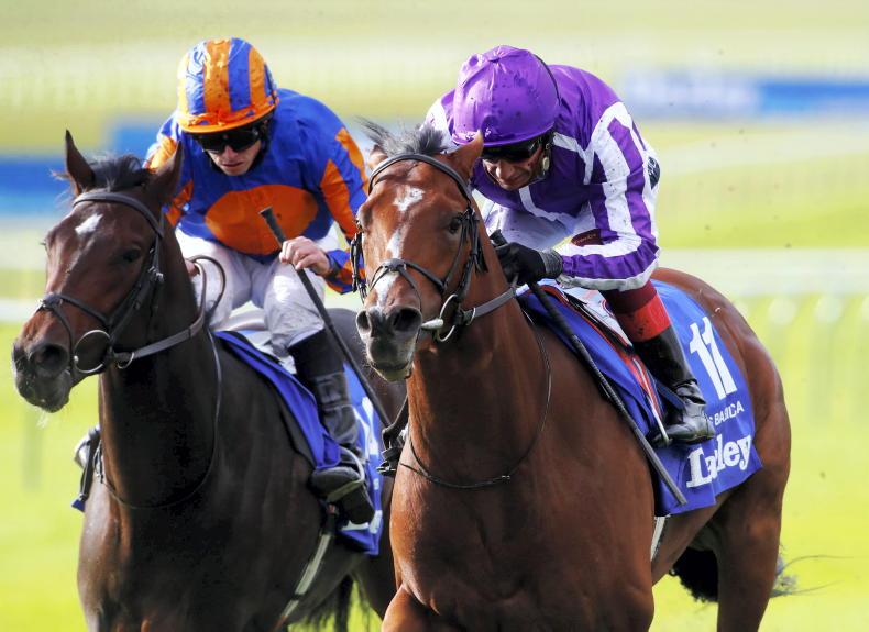 St Mark’s Basilica was ridden by Frankie Dettori and had just about enough to see off his stablemate, who was a little unlucky under Ryan Moore. The pair finished ahead of Thunder Moon, the colt trained by Joseph O’Brien who had beaten both in the National Stakes at the Curragh.