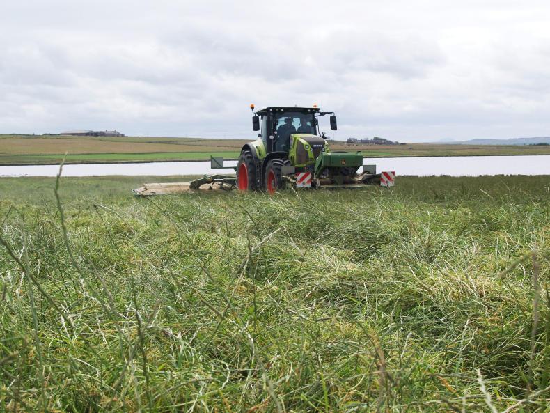 Andrew cutting down silage for Geordie and Willie Cormack, who farm at Wester, Brough, just a few miles from Dunnet Head.