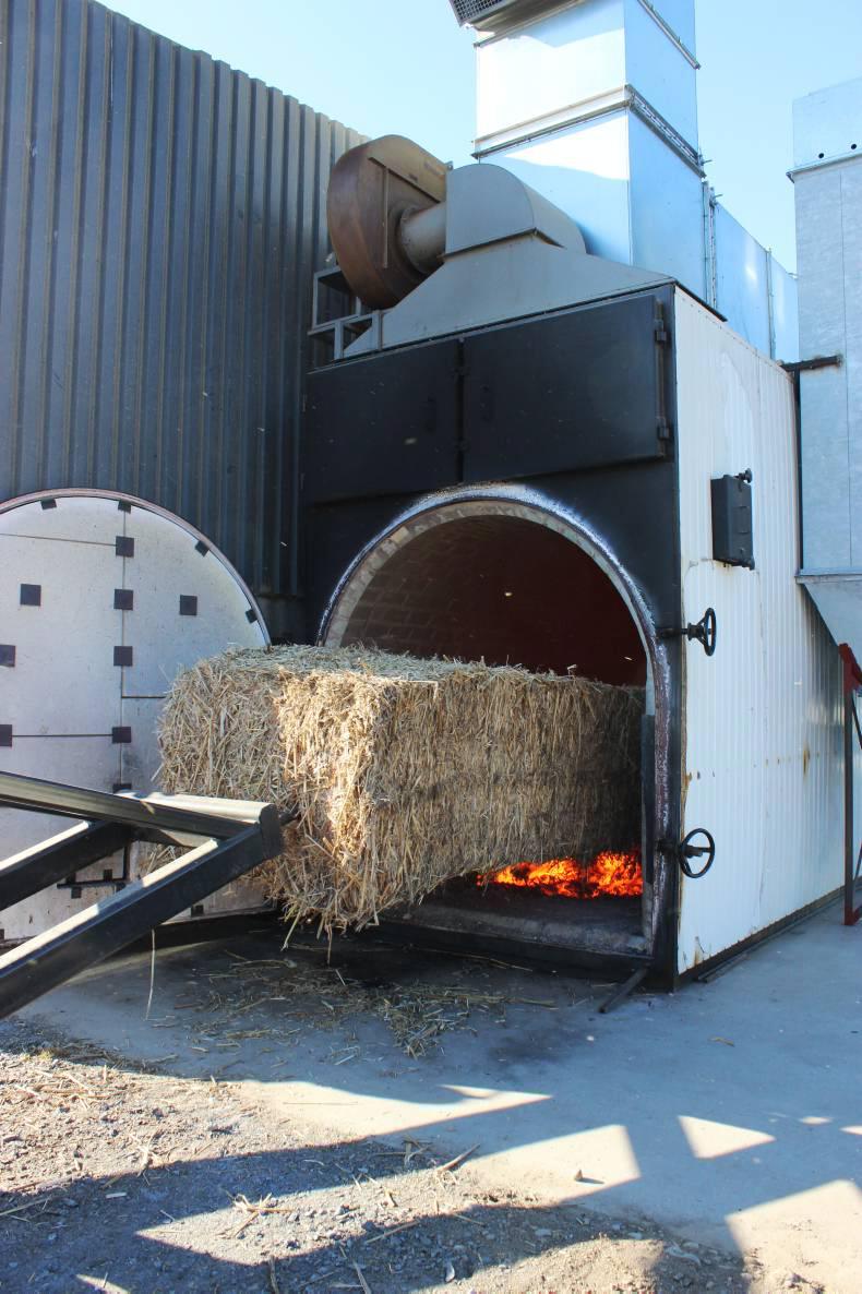The burner that was installed has manual front loading through an open door but it is fitted with automatic ash removal. However, it will soon be fitted with an automatic loading system which will remove the need for the very regular fuelling of the burner. This will involve a moving platform to carry a big number of bales towards the burner and this may only need to be reloaded a few times a day for its 24-hour working window.