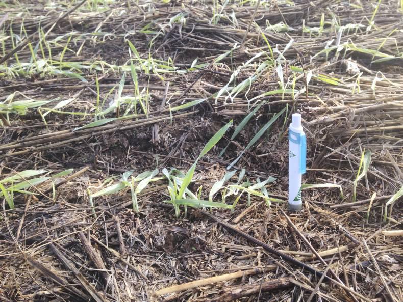 The early June frost burned off some of the barley plants that had emerged at the time where the stubble lay across the emerging rows (see photos). We were uncertain about this for a while but it has since recovered and bounced back.