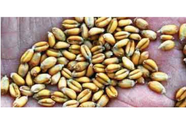 Seeds from one of the new hybrid varieties being tested had a peculiar dent on the grains. This looked like midge damage and when we went to the spring wheat, which is still green and filling, the first thing we noticed was the orange midge larvae with some of the grains. So this could well have been the cause of the problem on the winter variety also.