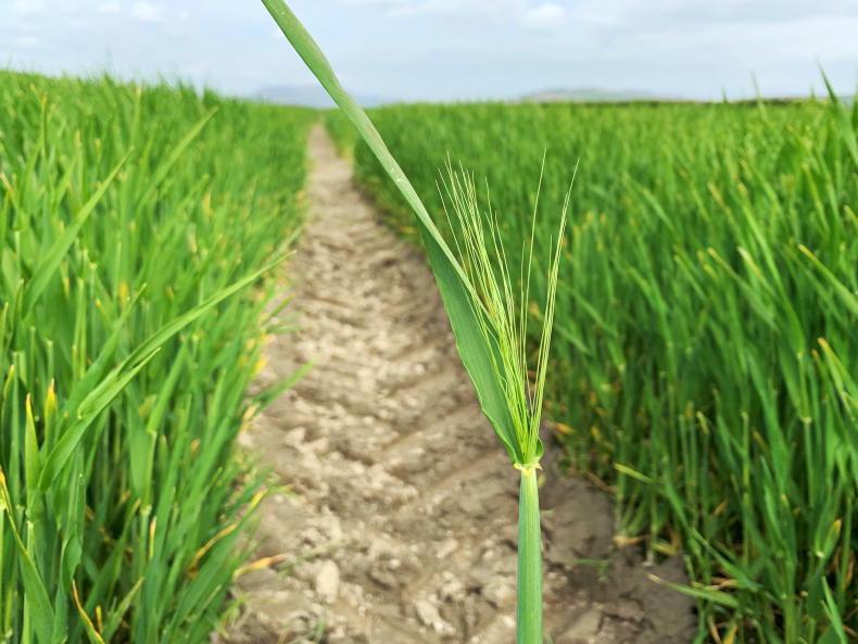 There were varying degrees of active and dead mildew as well as small amounts of crown rust in crops, however. The flag leaf was just emerging in many of the crops I walked.
