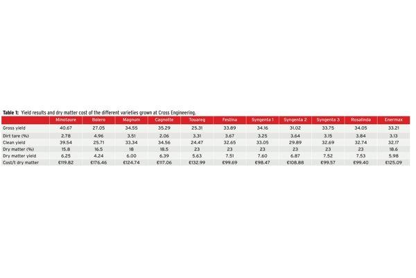 The newer Minotaure produced a whopping 40.67t/ac of roots but this converts to 6.25t/ac of dry matter yield.