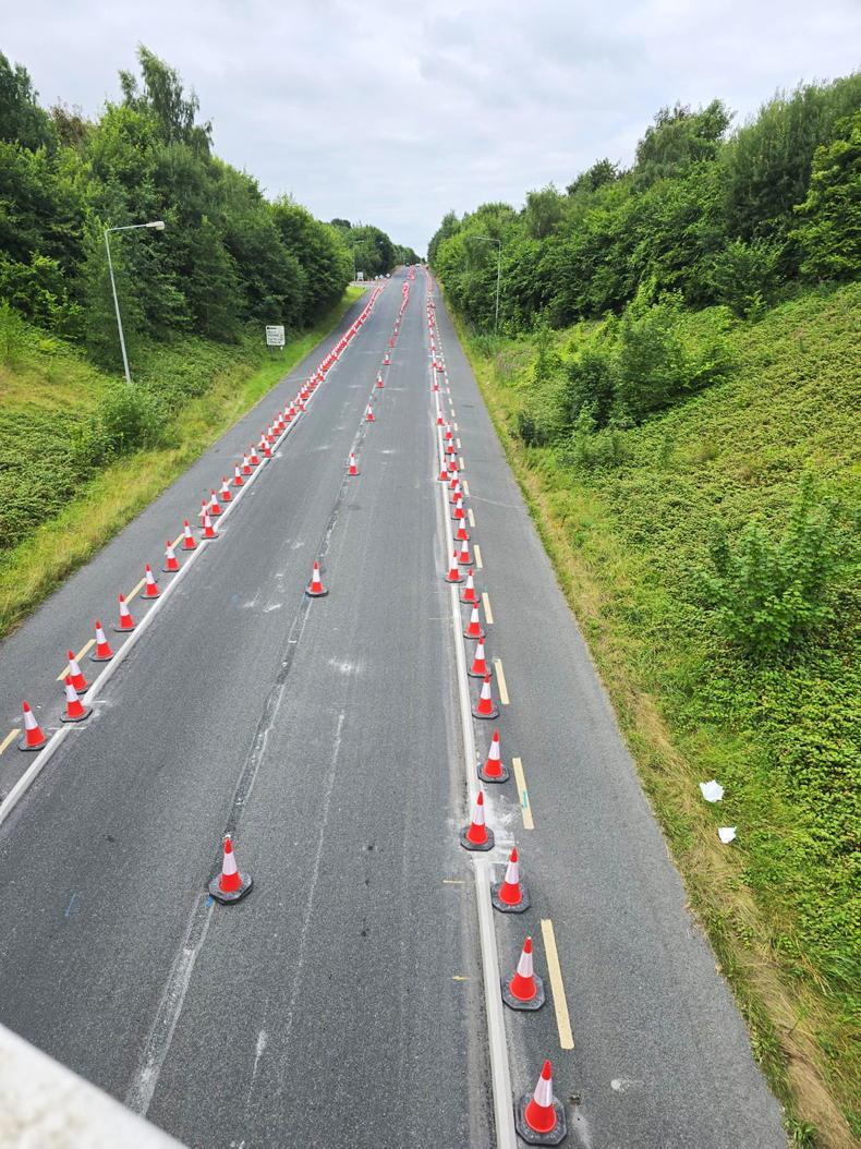 The cycle route is being installed along a 3.5km stretch of the road at a cost of €1.6m by Kildare County Council and Transport Infrastructure Ireland (TII).
