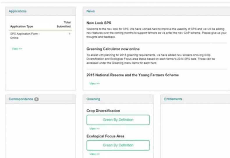The first screen (see Figure 1) shows the pot of entitlements you had last year, as well as a list of correspondence. This screen will also show, based on the total area and parcel use you submitted in 2014, two new boxes under the label greening, one of which relates to crop diversification; the other relates to EFA.