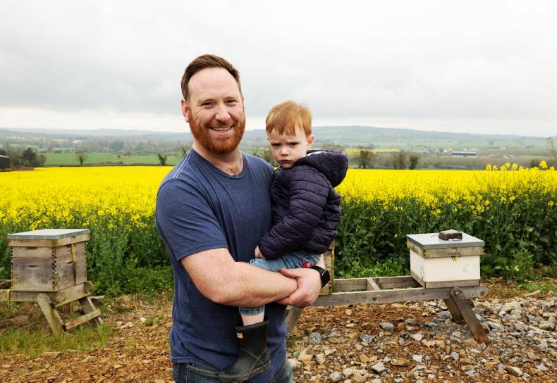Peadar Whyte with his son PJ in a field of oilseed rape at his farm on The Naul, Co Dublin. \ Lorraine O'Sullivan