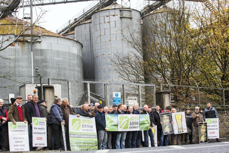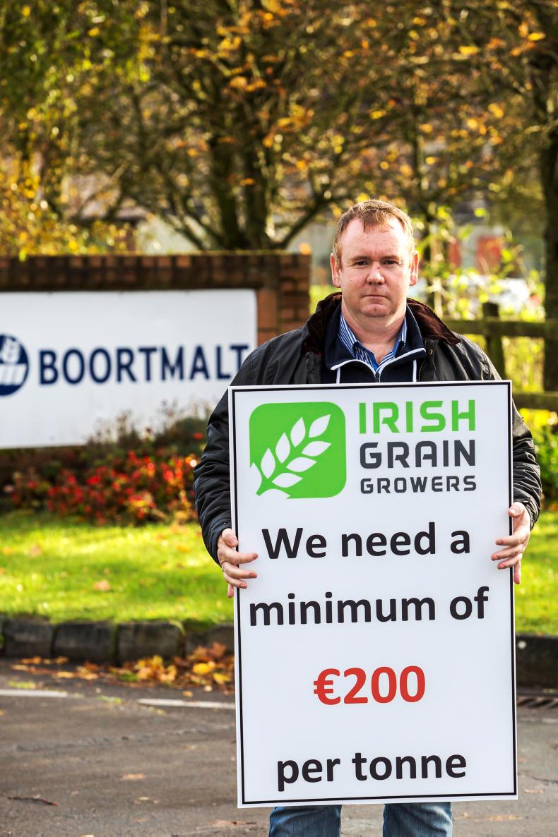 Malting barley must be a minimum of €200, the Irish Grain Growers (IGG) say. About 75 growers gathered outside the gates of Minch Malt in Athy, the base of Boortmalt in Ireland.