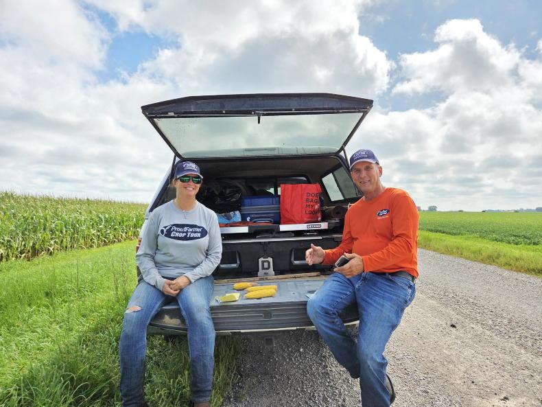Bonnie and Leon measuring samples on the Pro Farmer crop tour last week.