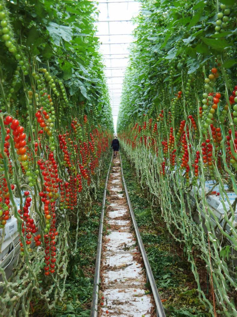 There were many different types of tomato grown in the same house, from vine tomatoes to peach-shaped tomatoes to new non-drip varieties for use in sandwiches and pizzas.