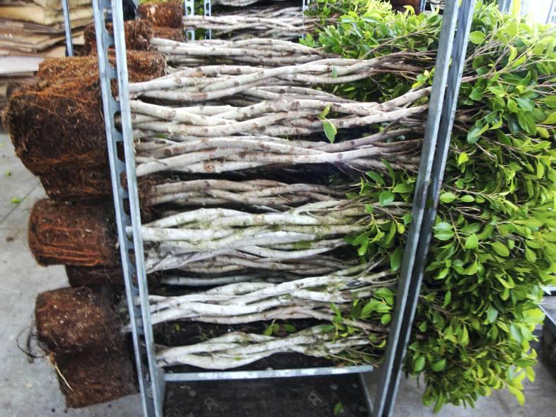 Manager Koen Peeters said the company mainly specialises in three species – standard Ficus plants with differently shaped stems, Chamaedorea in various sizes and Buxus sempervirens intended for cone and ball-shaping of plants (topiary). A few other plants are also grown.