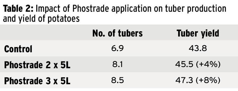 A brief summary of these results indicates a tuber yield benefit of 19%, an increase in tuber numbers of 19% and a 19% increase in the uptake of N and P into the plant.