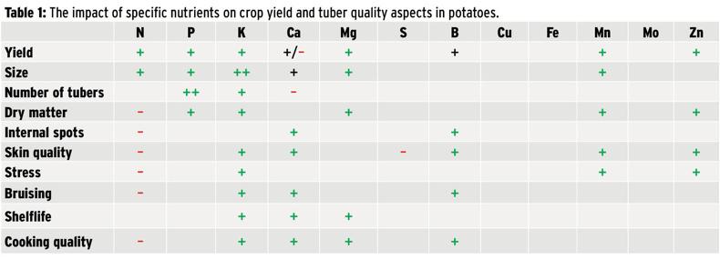 Potato nutrition should focus on the yield building phase and then the tuber fill stage.Magnesium is said to be particularly important in regions that have low light intensity.Foliar application might best be used to target yield improvement on low fertility rented land.Actions to stimulate root growth can bring many associated benefits.