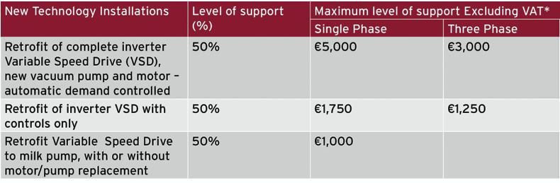 The SEAI has also introduced a separate grant for instances where a farmer might, for example, have a new vacuum pump and so does not want a complete system replacement. This grant will cover the retrofitting of existing systems with an inverter only.