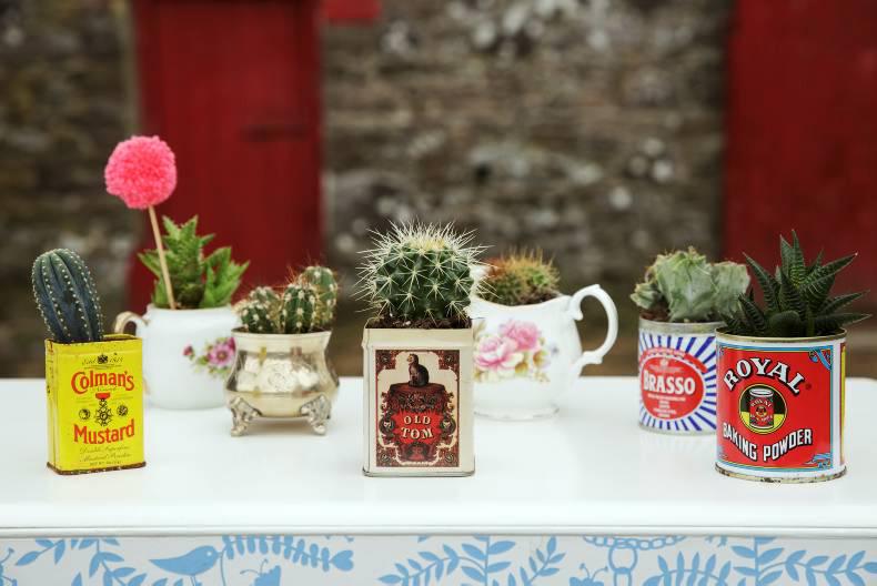 Old containers eg teacups, tins or vintage cans (if you’re using an old tin, check it first by placing water in the container. If it doesn’t leak, then it is good to use!)